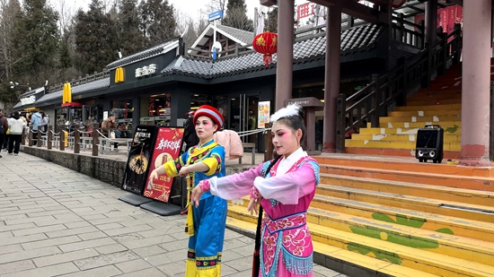 武陵源区融媒体中心2月19日讯(通讯员 陈全凤)2月19日大年初三,天子山景区管委会特邀土家族非物质文化遗产代表性传承人走进景区,在贺龙公园献上阳戏与花灯专场表演,让游客在奇峰秀水间沉浸式感受非遗魅力。
