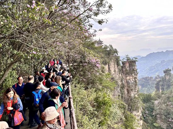 武陵源区融媒体中心4月5日讯(记者 吴文锦)清明作序,万物盎然。4月5日,清明假期第二天,张家界国家森林公园春日旅游热度不减,各地游客络绎不绝,奔赴这片仙境山水,踏青赏春、尽享自然野趣。
