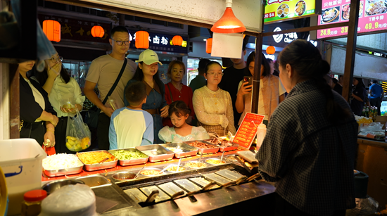 “白天看山,晚上逛吃,这样的行程太惬意了。在这里,既能欣赏到大自然的鬼斧神工,又能感受浓郁的人间烟火气,简直不虚此行。”广州游客李女士一边品尝美食,一边笑着说。