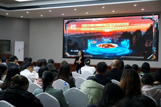 活动现场,雷锦、李圣华两位讲师分别以《不负青山不负卿 我们的张家界 我们的光荣与梦想》《峰林下的她力量 扎根 绽放 远航》为题进行授课。雷锦老师结合张家界生态保护与旅游发展的生动案例,通过“家乡知识快问快答”等互动游戏,带领学员感悟“绿水青山就是金山银山”的发展理念,现场不时爆发出热烈掌声;李圣华老师则围绕“吃住行游购娱”旅游各要素进行全面讲解,以本土优秀女性创业者的真实故事为脉络,深入浅出解读新时代女性的多维角色定位,引发学员强烈共鸣。