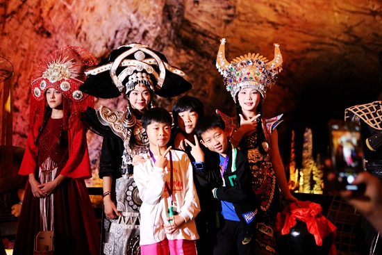 国庆、中秋双节期间,黄龙洞景区将传统文化、民俗风情与时尚潮流进行巧妙融合,在生态广场、龙舞厅、响水河、龙宫大厅等精华景点打造综艺潮玩场景,推出了“民族特色时装T台秀”“海选龙王NPC互动游戏”“龙王巡游快闪秀”“非遗民俗风情演艺”“奇幻光影·嫦娥奔月实景表演”等系列活动,为市民游客的假日休闲时光带来了全新的游玩体验。