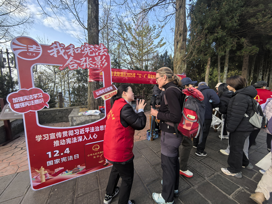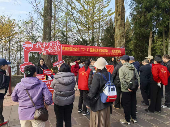 武陵源区融媒体中心12月25日讯(通讯员 潘思宇)为进一步深化法治宣传教育,将法治服务融入文旅发展脉络,12月5日,民进武陵源支部联合区司法局在张家界国家森林公园举办“宪法进景区”主题宣传活动。此次活动是双方共同谋划的法治惠民举措,也是民进武陵源支部“法护四季·民进同行”法律服务特色品牌之“冬季服务旅游”系列的核心活动,以“景中普法、法护旅游”为理念,让游客在欣赏美景的同时感受法治温度,为景区注入鲜明法治底色。